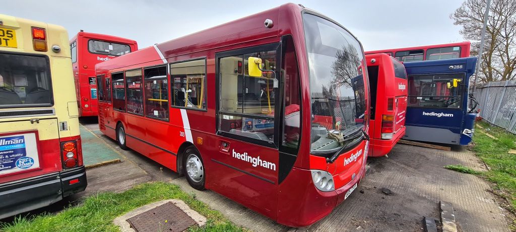 Ex Carousel short ADL/Enviro 200 OU57 FGV has received the new fleet livery and been numbered 283. ADL/Enviro 200s 262 (EU58 JCJ), 264 (EU59 AYM), 265 (EU10 AOX) are in the new livery. Short ADL/Enviro 200 296 (SN10 CCY) entered service at Clacton (CN) in mid March. As a result, Dart SLF/Mini Pointer 286 (HW54 BTY) was withdrawn, and sold for preservation. Sisters 285 (SN03 EBV), 288 (HW54 BUF) have been stripped for parts at CN. Omnilink 457 (AU61 HVK) was on loan to CN from Sible Hedingham (HD) during March. ADL/Enviro 400 616 (SN10 CCV), suffered rear end accident damage and has gone to Clacton for repairs. Following accident damage, Volvo B7TL/Plaxton President 586 (X584 EGK) had the plain window in the former centre exit bay replaced by an opening one. Sister 568 (W458 WGH) is now being stripped for parts at CN. Normal school day timetables resumed from 8/3/21. Omnidekka movements: 1/3/21: 810 – Chambers-KN. 2/3/21: 813 – KN-Chambers. 16/3/21: 800 – KN-Chambers; 801- Chambers-KN. 17/3/21: 812 – KN-CN. Odd sightings: 4/3/21: B7TL/President 586 on D1/D2 following failure of ADL/E200 293 at Maldon Tesco. 8/3/21: Solo 910 on 19B pm + 63/A. 11/3/21: B7TL/President 580 on 15 pm. 15/3/21: Omnidekka 814 on PL3 am. 16/3/21: B7TL/President 571 on 19B pm + 63/A. 17/3/21: Dart SLF/Pointer 260 on 19B pm + 63/A; Omnidekka 812 on 95A pm; Solo 911 on 50, 69 etc. 18/3/21: Omnilink 457 CN-KN then on 903 pm. 19/3/21: B7TL/Gemini 521 on TLA B pm; 810 on TLA A pm, then D1. 22/3/21: Omnilink 457 on 88 duplicate am, then KN-HD; 580 on TLA C am. 23/3/21: 812 on TLA C pm.