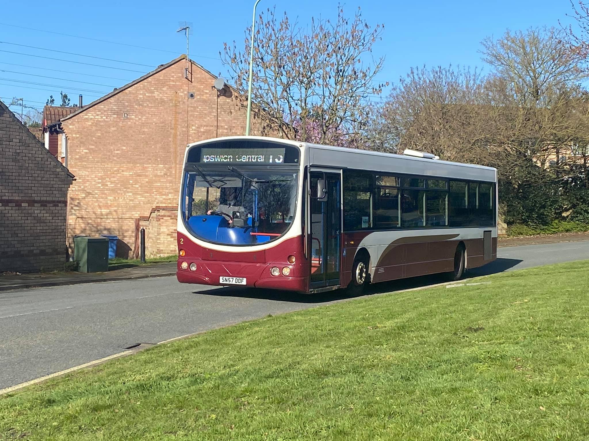 CHAMBERS. From 8/3/21, normal school day timetables resumed. Scania N230UD/Olympus 873 (PN09 EMV), which had been long term VOR, had a replacement engine fitted by mid March. Sister 877 (PN09 ENO), collided with a fallen tree on the A134 near Sudbury and was subsequently VOR’d for repairs.