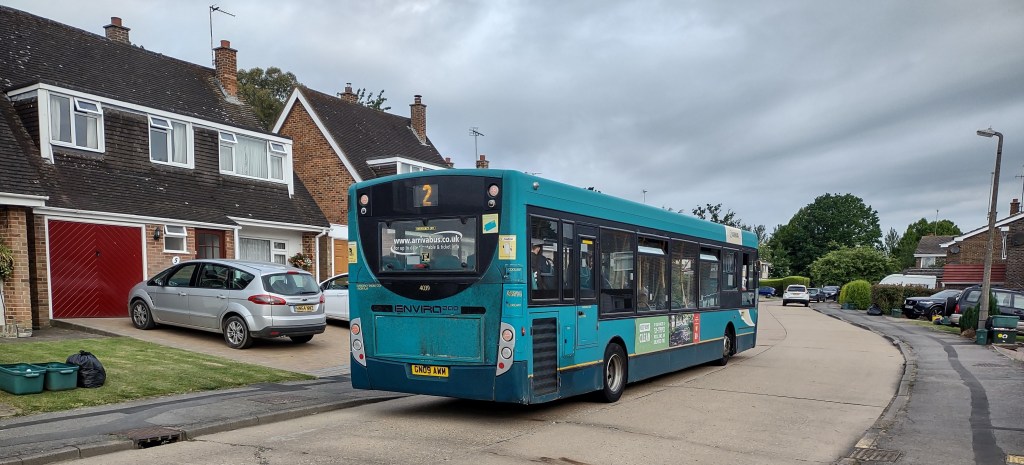Ex Arriva KT Northfleet ADL/Enviro 200 4039 (GN09 AWM) is now here. Dart SLF/Mini Pointer 1559 (EU56 GVG) went to Northfleet in exchange. Ex Arriva Midlands Volvo B7TL/Wright Gemini 2151 (UUI 2906) was here, having come via the Kent fleets, but was quickly returned, unused. Odd sightings: 1/6/21: R133 StreetLite 4324 on 1. 3/6/21: P&R ADL/E200 4071 on 77. 4/6/21: Dart SLF/MPD 1559 on 1; P&R ADL/E200 4073 on 77; StreetLite 4224 on 2; R133 StreetLite 4324 on 1. 7/6/21: P&R ADL/E200 4071 on 77; StreetLite 4261 on 1; R133 4324 on 8. 8/6/21; P&R ADL/E200 4072 on 77; R133 4324 on 8. 9/6/21: Short SLF/Caetano 1565 on 1; 4071 on 77; R133 4324 on 8. 10/6/21: 4071 on 77; R133 4324 on 8. 11/6/21: R133 4324 on 8. 12/6/21: R133 4324 on 8. 14/6/21: Dart SLF/MPD 1559 on 8; P&R ADL/E200 4073 on 77; R133 4324 on 8. 15/6/21: R133 4324 on 8. 16/6/21: 4073 on 77; R133 4323 on 2; R133 4324 on 8. 17/6/21: 4073 on 77; R133 4323/24 on 8. 18/6/21: R133 4324 on 8. 19/6/21: R133 4324 on 8. 21/6/21: 4071 on 2; 4075 on 77; 4324 on 8. 23/6/21: 4224 on 1; 4324 on 8. 25/6/21: 4075 on 2; 4224 on 2. 28/6/21: P&R ADL/E200 4075 on 133. 29/6/21: P&R ADL/E200 4072 on 77; 4075 on 2; R133 StreetLite 4323 on 1. 30/6/21: P&R ADL/E200s 4071/74 on 2.