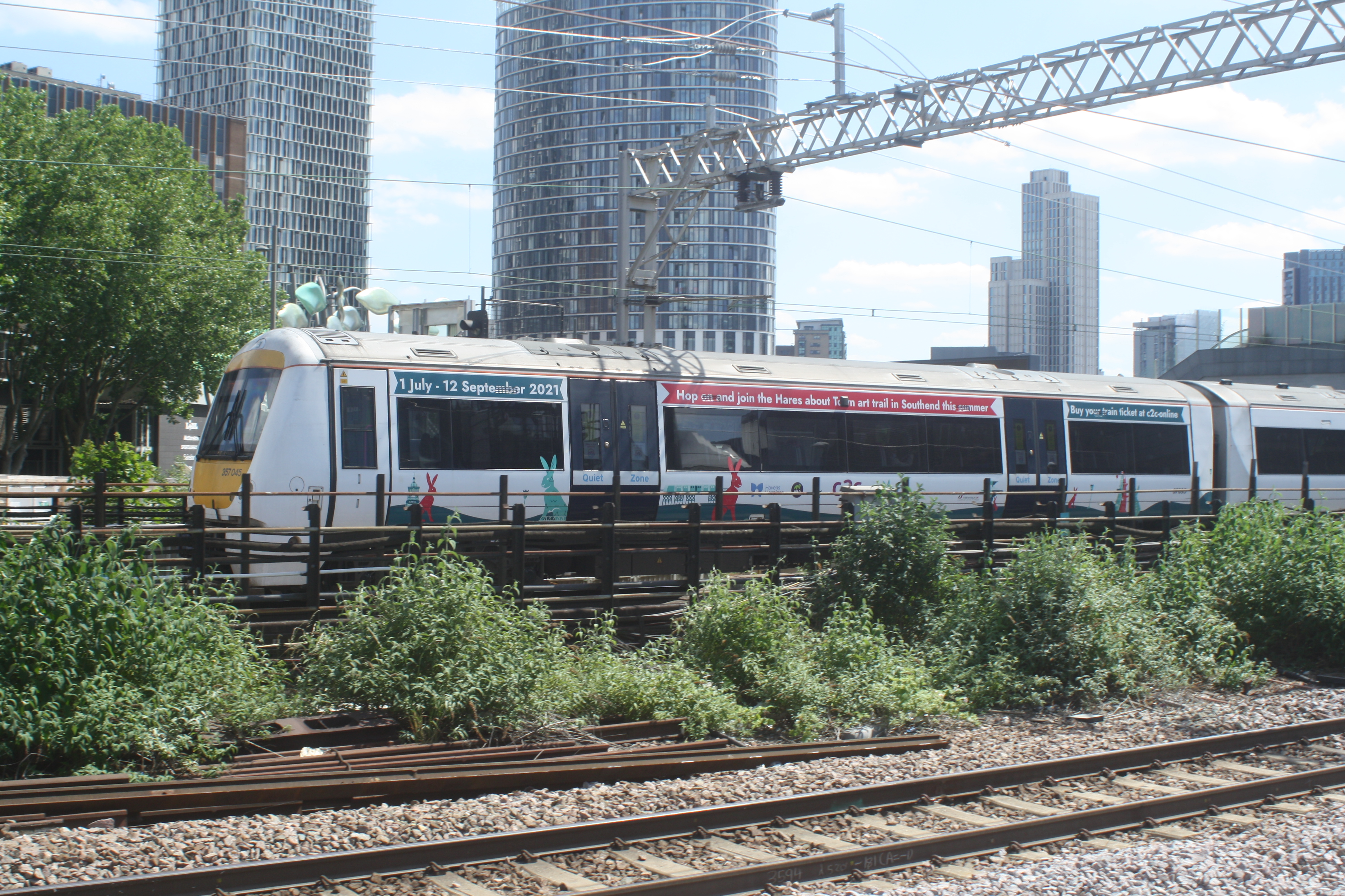 Above: ‘Javelin’ 395003 arrives at Stratford International on 12/6/21, on the St Pancras to Herne Bay 1506 departure. (John Podgorski).