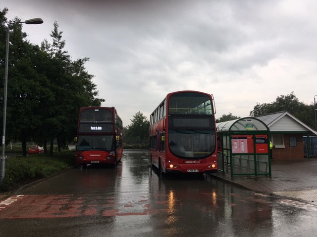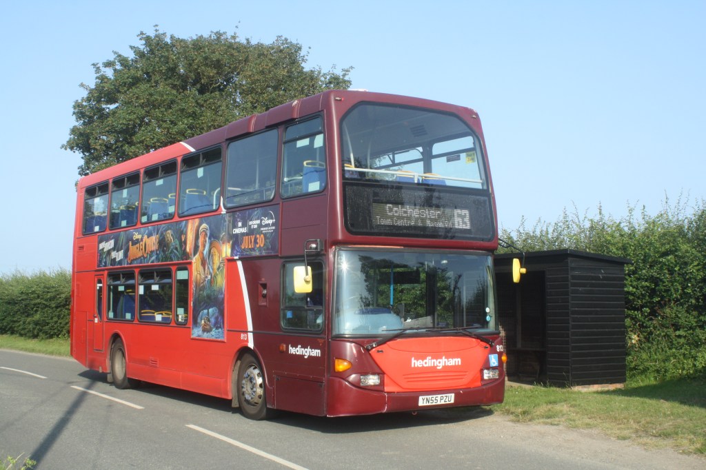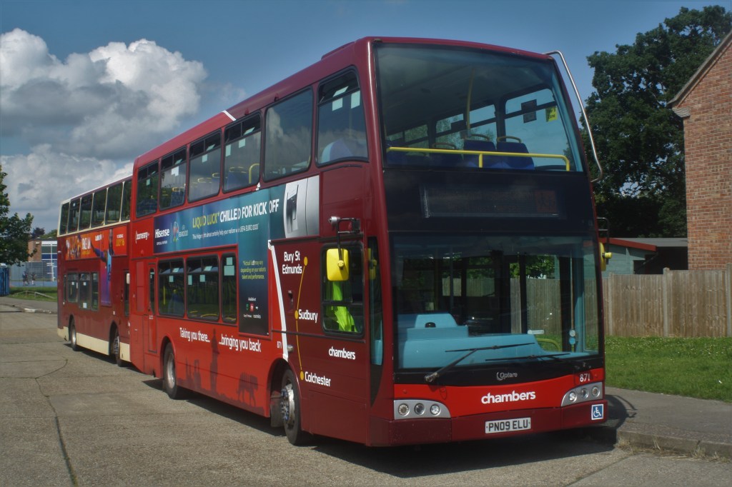 Scania Omnidekka 804 (YN55 PZF) was loaned to Konect 3-4/7/21, for the Bubble Rush event park and ride at UEA (University of East Anglia), Norwich. Scania N230UD/Olympus 871 (PN09 ELU) was briefly loaned to Hedingham at Kelvedon in mid July. Sister 875 (PN09 ENE) was delicensed due to accident damage in mid July.