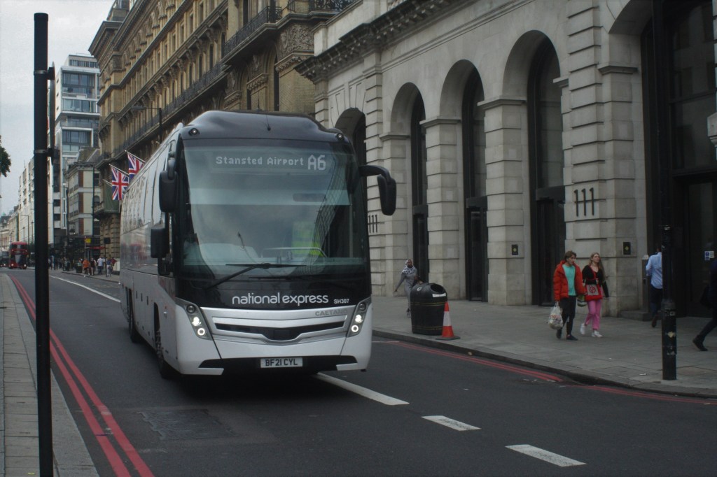 NATIONAL EXPRESS. Odd sightings: 24/7/21: Volvo B11RT/Levante SH211 (BX16 CMV) on A1.