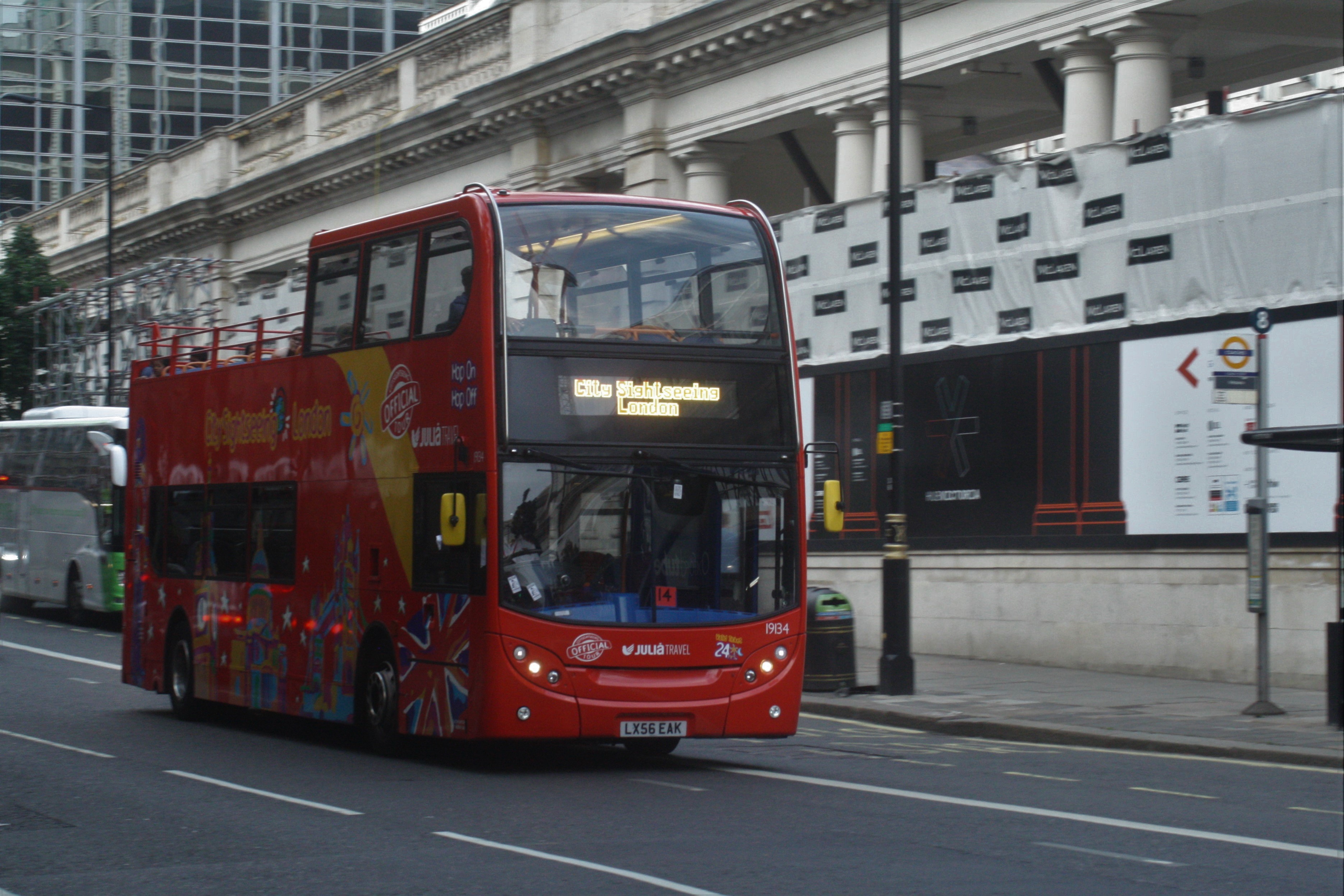 STAGECOACH EAST LONDON. Ex Stagecoach Cambridge Volvo B5LH/Wright Gemini3 open toppers 13808/12 are additional buses for the Grupo Juliana City Sightseeing tour.