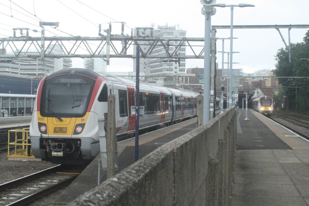 MTR ELIZABETH LINE. 345069 was at Ilford depot on 24/7/21. 345055 was on Liv St-Shenfields on 30/7/21. 345058 was at Shenfield sidings on 31/7/21. Class 315 obs: 10/7/21: 315819 + 837 at Gidea Park yard. 315839 + 844 in Aldersbrook sidings. 315834 + 853 in Ilford depot. 315856 + 857 in Shenfield sidings. 17/7/21: 315834/37/39/48 all visible at London end of Aldersbrook sidings. 315857 + 858 in Shenfield sidings. 24/7/21: 315834 + 853 in Shenfield sidings. 315837 visible in London end of Aldersbrook sidings. 30/7/21: 315847 + 857 on Liv St-Shenfields.