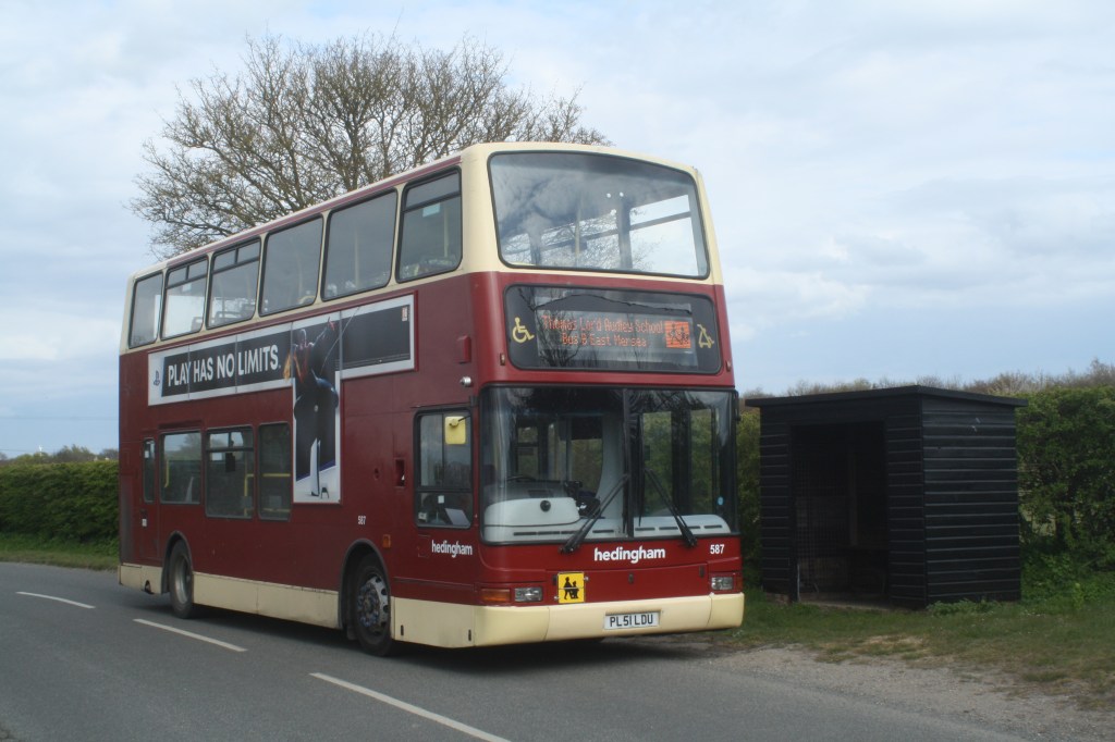 Above: Scania Omnidekka 813 at East Mersea on 22/7/21. The first day of the summer holiday extension of route 63 there from West Mersea. (John Podgorski).