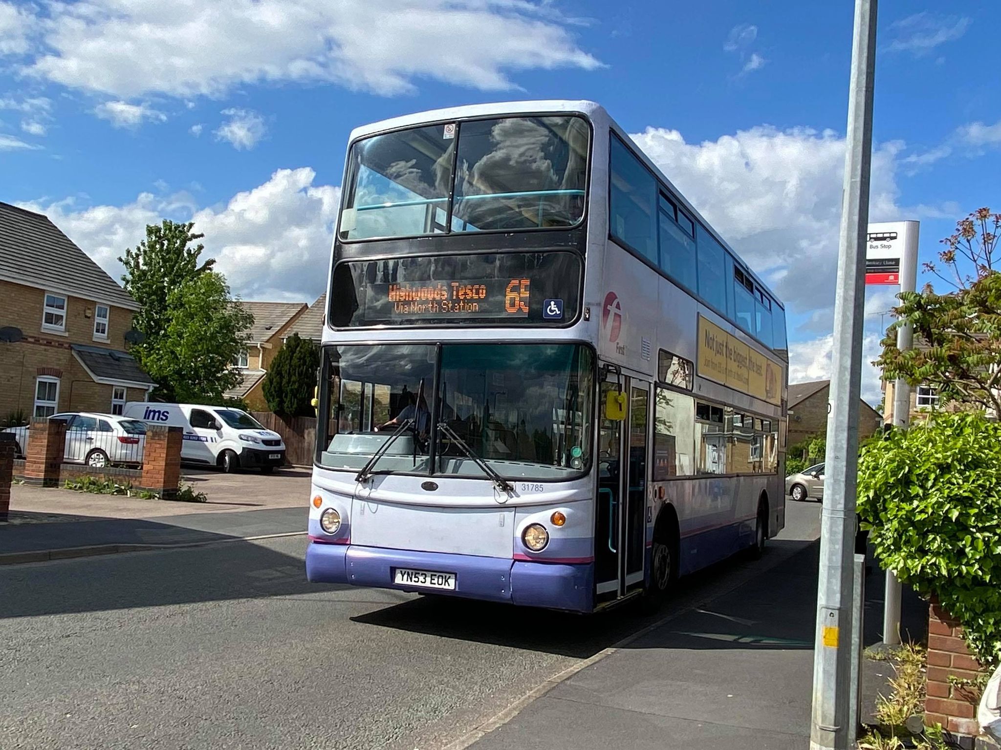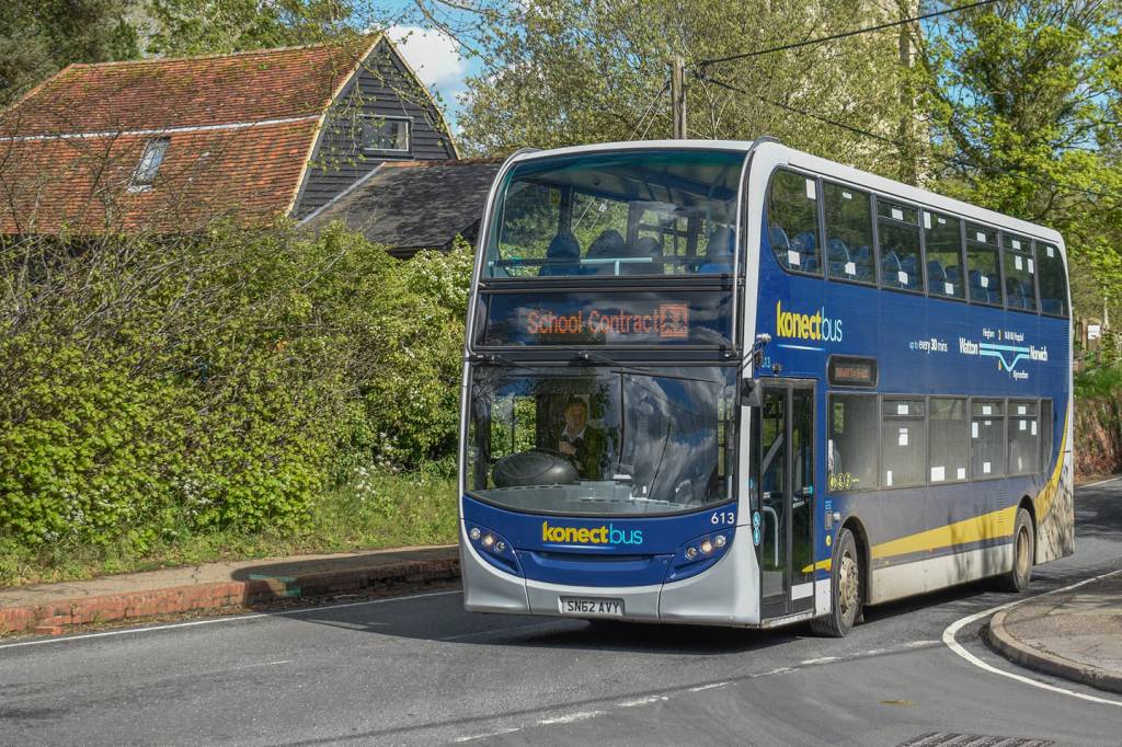 Scania Omnidekka 804 (YN55 PZF) was loaned to Konect 3-4/7/21, for the Bubble Rush event park and ride at UEA (University of East Anglia), Norwich. Scania N230UD/Olympus 871 (PN09 ELU) was briefly loaned to Hedingham at Kelvedon in mid July. Sister 875 (PN09 ENE) was delicensed due to accident damage in mid July.